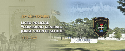 Se conmemora el 59° aniversario del Liceo Policial "Jorge Vicente Schoo", creado el 12 de diciembre de 1962 con la misión de brindar a los cadetes una educación de calidad proporcionando los conocimientos y las herramientas necesarias para el desarrollo integral de sus capacidades, valores y actitudes, formándolos como futuros efectivos policiales solidarios, respetuosos, responsables, con capacidad crítica, de trabajo, que puedan incidir constructivamente y de manera democrática en el cambio social.